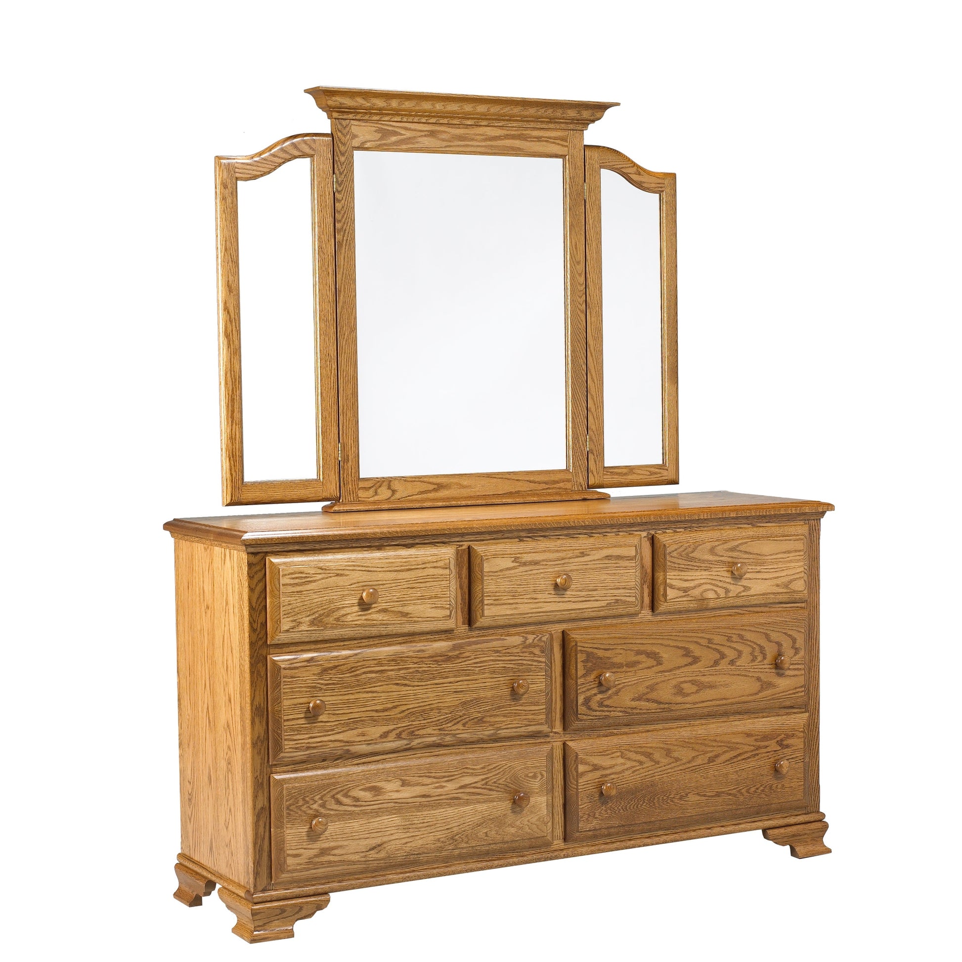 Designed with relaxed style and crowned moulding, the Country Lane Wing Mirror adds charm and functionality to any room. Featuring wing mirrors on the sides of the centre mirror, it sits beautifully on top of a dresser. Crafted with a water-based stain and water-based pro polyurethane top coat, for long-lasting durability.