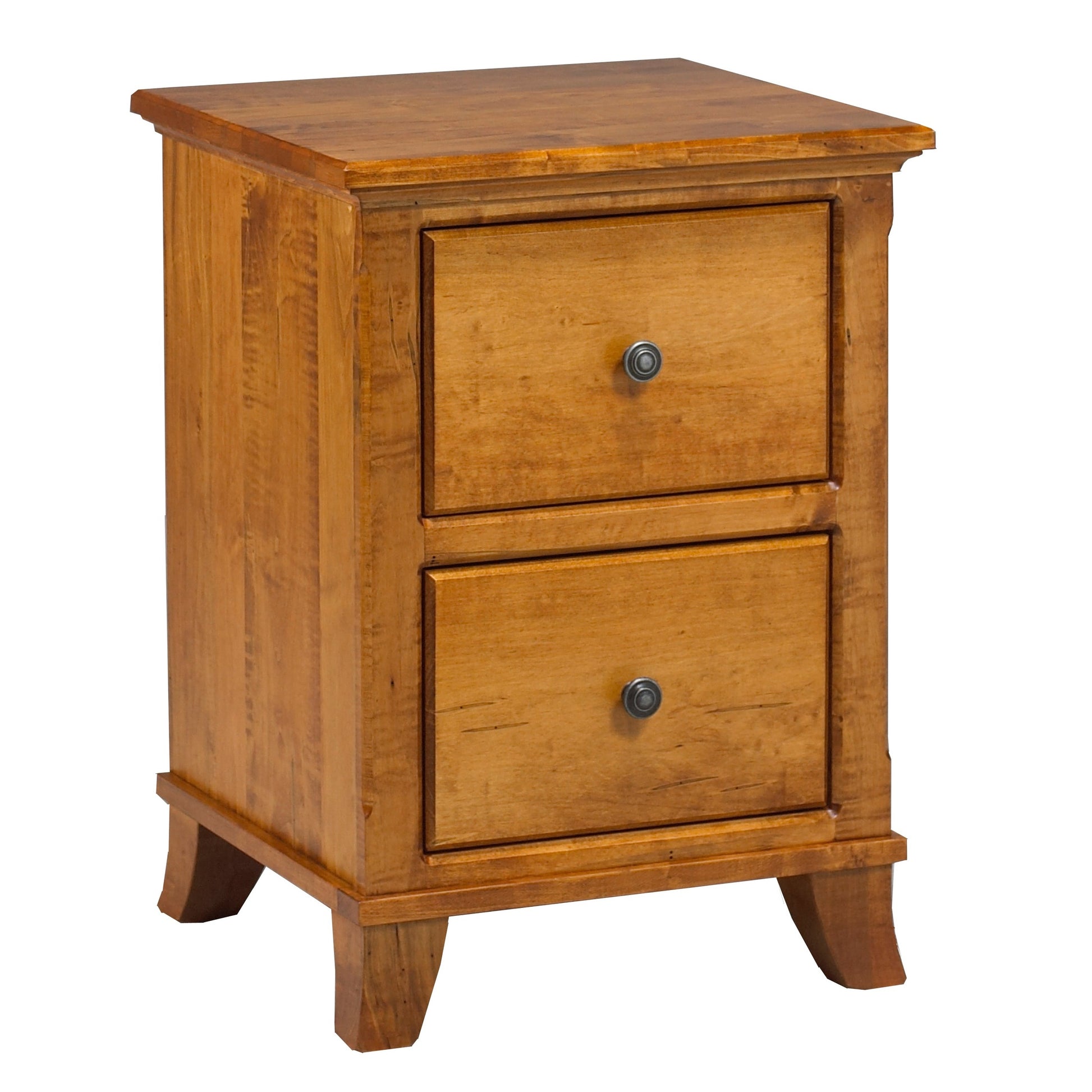 The Bourbon 2 Drawer Nightstand, measuring 20"W, features a refined beveled edge on the top and drawers, complemented by elegant wing feet for a classic touch. Equipped with two spacious drawers, it uses Blum soft-close hardware to ensure smooth and quiet operation. Finished with a water-based stain and protected by a water-based professional polyurethane top coat, this nightstand offers durable beauty and resistance to wear, making it a sophisticated and practical addition to any bedroom.