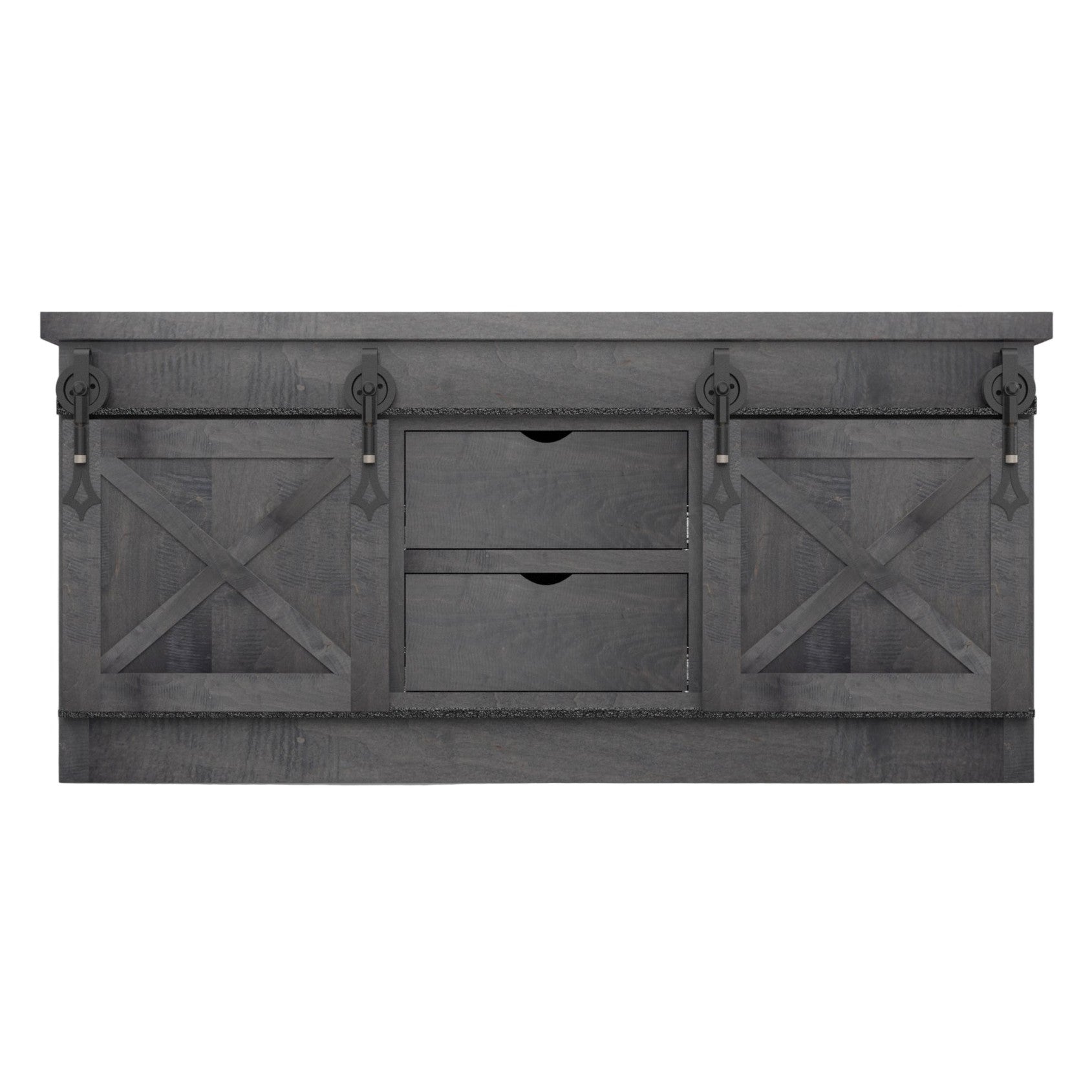 This 66" barn door TV stand combines practical storage with distinctive farmhouse aesthetics. Sliding barn doors provide easy access to two deep drawers, while adjustable side shelving accommodates décor, media players, and sound systems. Blum soft-close drawer hardware ensures smooth, whisper-quiet operation. Built from solid wood and finished with water-based stain and professional-grade polyurethane, it delivers durability and timeless appeal for any living space.