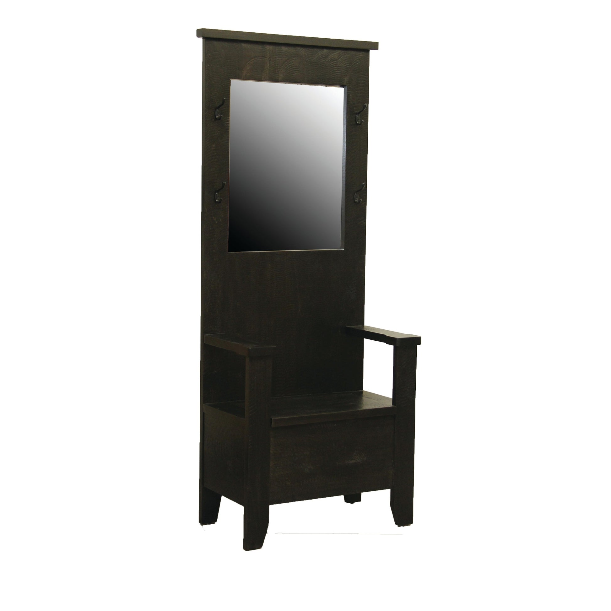 This solid wood entrance bench combines form and function with a thoughtfully designed layout. The integrated mirror and four wall-mounted hooks create an organized entryway station for coats, bags, and accessories. Lift the seat to access hidden storage—perfect for boots, gloves, and seasonal items. Constructed from solid wood and finished with water-based stain and professional-grade polyurethane, it delivers both aesthetic warmth and lasting durability. A versatile piece that anchors your foyer with timeless appeal.